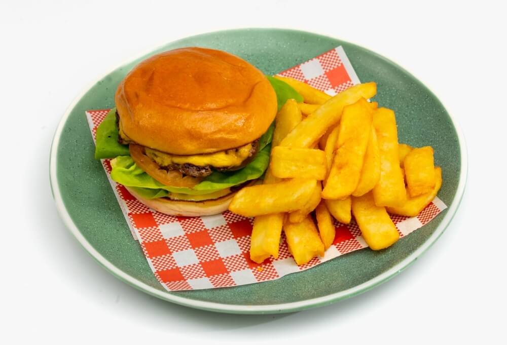 beef patty, butter lettuce, tomato, cheese, special sauce, white onion, crispy bun, french fries